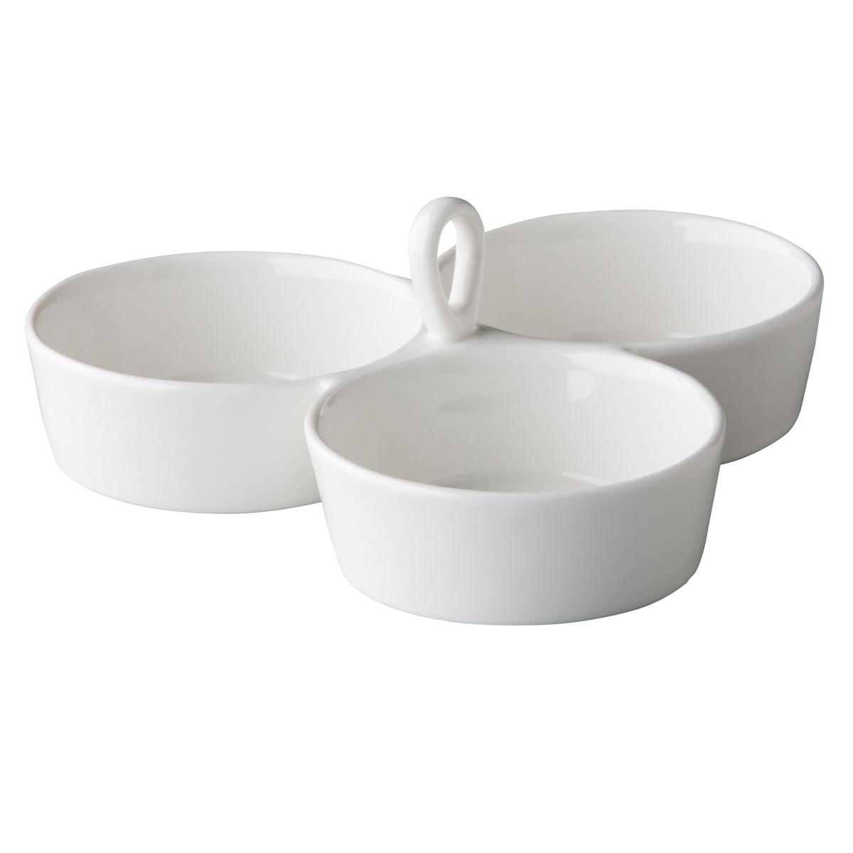 3-vaks kom met handvat 3 x 10 cm, Q fine china, 2 stuks