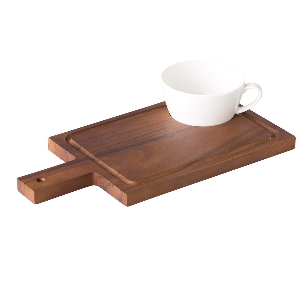 Acacia serveer plank met handvat incl inkeping voor kom, 1 stuks