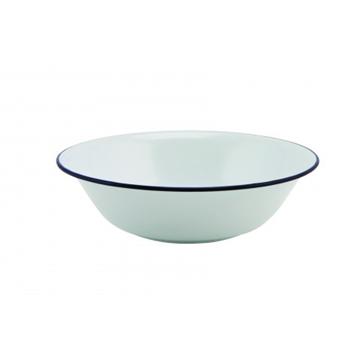 Emaille kom met blauwe rand 16 cm, 12 stuks