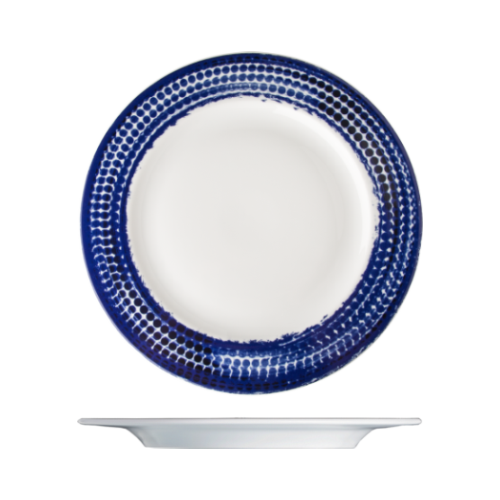 Bord isabelle points vlak 23 cm, rand, indigo blauw, suisse langenthal, 6 stuks.
