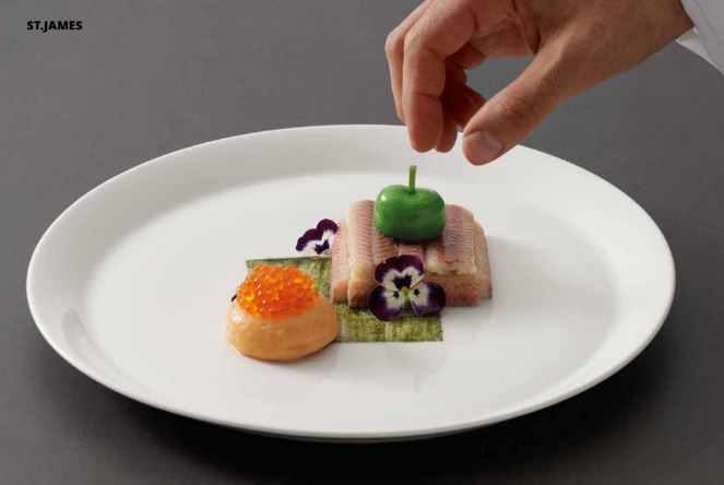 Het lichte servies van st.james is een vitrified fine China porselein met een extra toevoeging van natural bone ash. Door het gebruik van natural bone ash kan een dunner en verfijnder bord worden gemaakt zonder dat het zijn kracht verliest. st.james maakt enkel gebruik van de beste grondstoffen uit europa waarbij de natural bone ash nog steeds uit engeland wordt geïmporteerd.