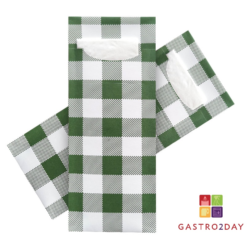 Bestekzakje / pochetto Groen / Wit geblokt - wit servet doos 500 stuks.