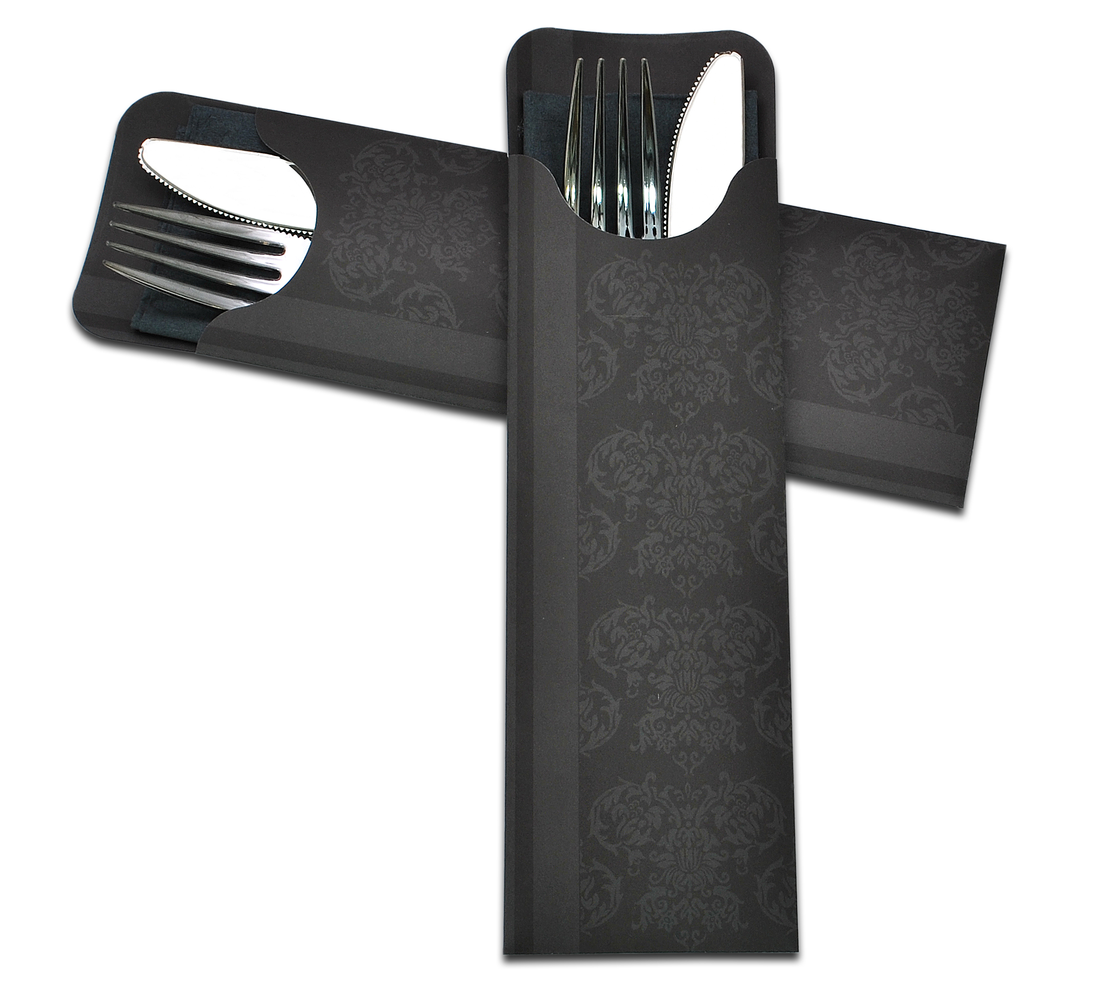 Bestekzakje / pochetto, large baroque, servet antraciet,G2D, doos 600 stuks.