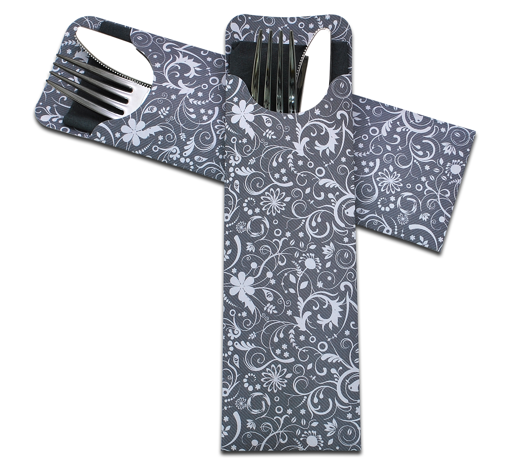 Bestekzakje / pochetto, large elegant grey, servet antraciet,G2D, doos 600 stuks.