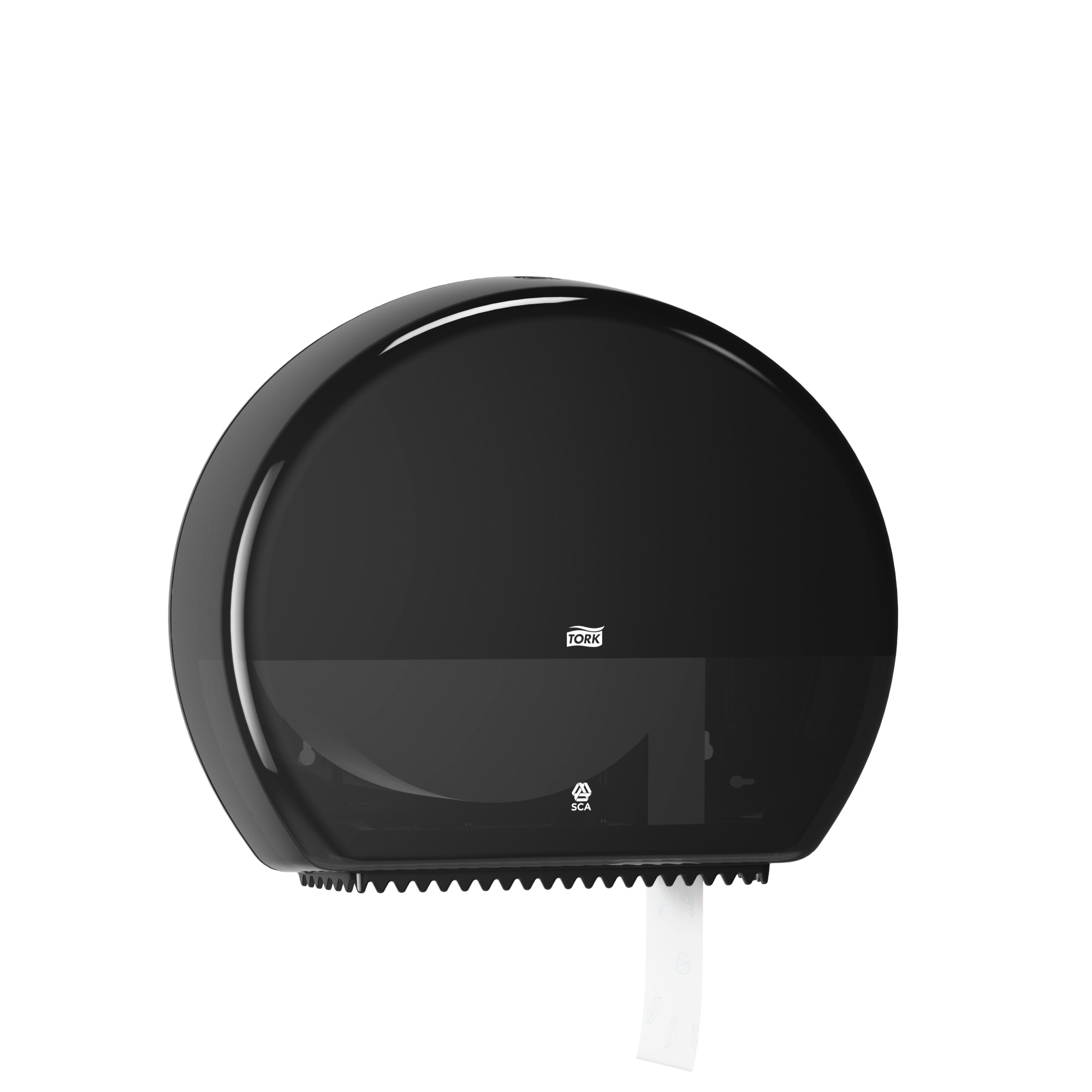 De zwarte Tork Jumbo toiletroldispenser heeft de volgende eigenschappen: