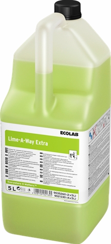 Hoog geconcentreerde vloeibare vaatwasmachine ontkalker voor professioneel gebruik. De kalkopbouw wordt met Ecolab Lime Away snel een eenvoudig afgebroken. Uw verbeterd daarmee de waskracht en spoelwerking van de machine. Ook het verwarmingselement van de vaatwasser wordt snel ontkalkt waardoor er minder energie nodig is om het water te verwarmen. U bespaart dus tijd en kosten met Lime A way Ontkalker. Ook geschikt voor wasmachines. Het hoog Geconcentreerde product breekt hardnekkige kalkafzettingen af. Ideaal voor het ontkalken van professionele vaatwasmachines en wasmachines. Periodiek gebruik zorgt er voor dat uw machines optimaal blijven werken. U bespaart hiermee, tijd, geld en het milieu. Geurvrij. Lime AWay Extra niet gebruiken op koper of zink of andere gevoelige materialen als marmeren of natuursteen. Bij twijfel over de zuurbestendigheid van het te reinigen materiaal adviseren wij u deze eerst op zuurgevoeligheid te testen.