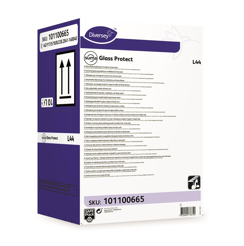 Suma Glass Protect L44 is een alkalisch vloeibaar vaatwasmiddel die geschikt is voor gebruik in een wijde range van glaswasmachines. Naast de krachtige combinatie van alkalische en kalkbindende ingrediënten, die zorgen voor een effectieve verwijdering van vuil en vetten, bevat Glass Protect L44 een speciaal ingrediënt voor de bescherming van glaswerk tegen corrosie en nare geuren. Door de sterk- klakbindende eigenschappen wordt kalkaanlsag in machine bij middelhard water voorkomen.